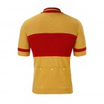 Replik des Learco Guerra - Ursus-Trikots, das 1950 vom Schweizer Meister Hugo Koblet mit dem Spitznamen "Le Pedaleur de charme" getragen wurde: Koblet war der erste nicht-italienische Gewinner des Giro d'Italia. Das Trikot wurde in Zusammenarbeit mit Learco Guerra hergestellt, der Marke der Familie der unvergesslichen „menschlichen Lokomotive“. Das Trikot besteht aus weicher italienischer Merinowolle und Acrylfasern und ist pflegeleicht in einer besonderen, leichten Art, die es perfekt für den Frühling und Sommer macht.